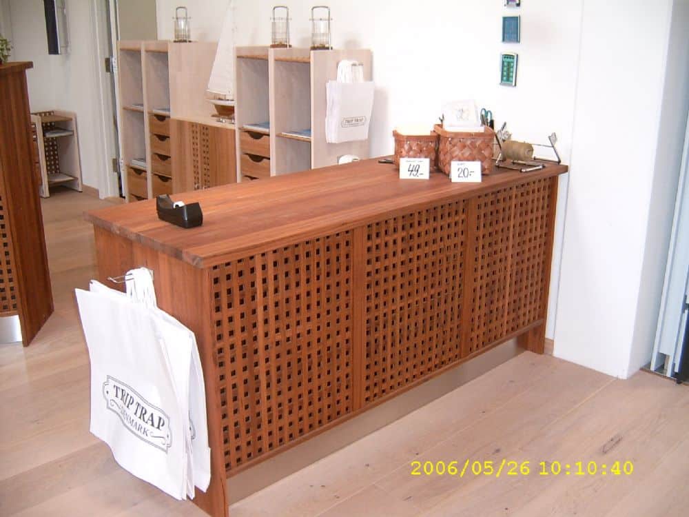 Havnens Snedkeri har gennem tiden lavet alle former for inventar til butiksindretning. Bl. a. har vi på eget værksted lavet diske, podier og andet til Trip Trap og andre gode forretninger rundt i det Danske land.